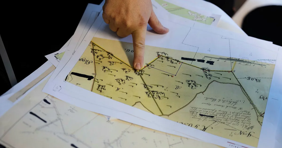 Jönsson arbetar med att stycka av mark och ska rita om en fastighetskarta som bygger på mätningar från 1920-talet, vilka i sin tur baseras på en karta från 1700-talet som ritades under storskiftet. Detta omfattande arbete, som nu föreslås ingå i Sveriges kulturkanon, pågick mellan 1758 och 1827 och syftade till att effektivisera jordbruket genom att slå samman böndernas små, utspridda ägor.