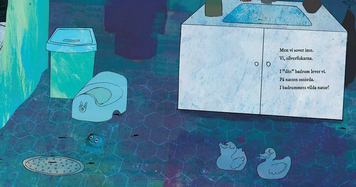 Berättelsen låter silverfiskarna själva ta till orda, vilket ger ett både humoristiskt och överraskande perspektiv: ”I ’ditt’ badrum lever vi. På natten ostörda. I badrummets vilda natur!” Läsaren bjuds in i en värld där det som många ser som en sanitär olägenhet presenterar sig själv som en fredlig grannskapsinvånare.