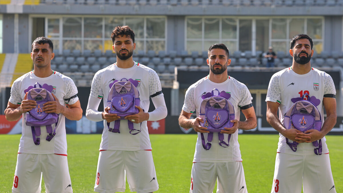 Iranska fotbollslandslaget gjorde en symbolisk gest inför fredagens vänskapsmatch mot Nigeria i Turkiet. Spelarna ställde upp på rad med lila och rosa skolväskor för att hedra offren för en tragisk attack mot en skola tidigare i år.