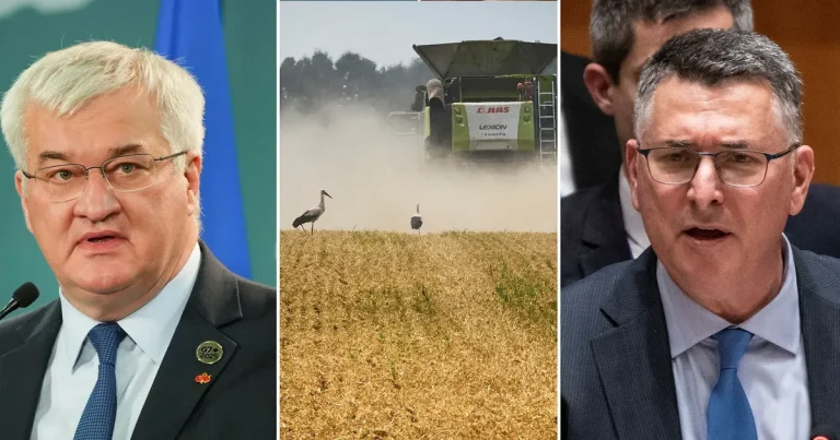 I blåsigt väder betraktar ortsbor hotet mot sin hembygd Blåsten river upp damm runt Dick Larsson, Sture Olsson och Peter Ekman när de promenerar längs…