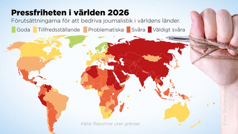 Fler artiklarDen globala pressfriheten fortsätter att försämras Lagar och rättsliga möjligheter används som vapen mot journalister. Journalistiken kriminaliseras, säger Erik Larsson, talesperson för Reportrar utan gränser (RSF). Under de 25 år som RSF har mätt pressfriheten…