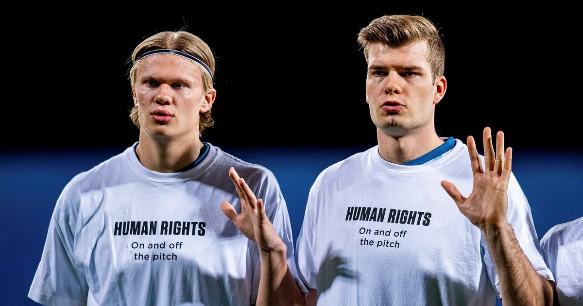 Under kvalet till VM i Qatar bar de norska spelarna tröjor med budskap om respekt och mänskliga rättigheter före matchstart. Förbundskapten Ståle Solbakken försvarade då aktionen med att de ville sätta press på Fifa att vara hårdare mot myndigheterna i Qatar.