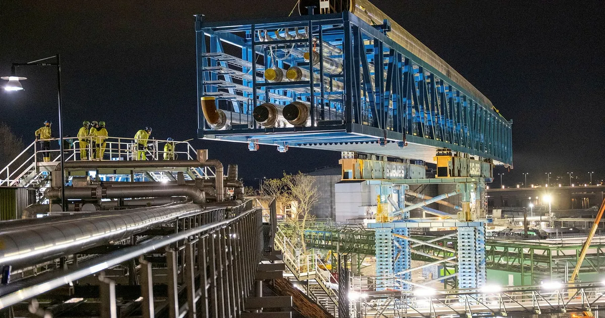I helgen genomfördes en spektakulär transportoperation i Värtahamnen i Stockholm när en enorm rörbro lyftes på plats över Lidingövägen. Den avancerade manövern markerar ett viktigt steg i Stockholm Exergis ambitiösa projekt för koldioxidinfångning, ett initiativ som kan få stor betydelse för huvudstadens klimatarbete.