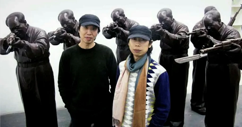 Bland de kontroversiella verken fanns en bronsskulptur föreställande Mao Zedong som riktade vapen mot Jesus, kallad ”Avrättningen av Jesus”. Ett annat verk, ”Maos skuld”, visade den tidigare ledaren knäböjande i en ångerfull position – en bild som kineser aldrig tidigare hade sett. Med denna skulptur ville bröderna förmedla att Mao borde ha bett om ursäkt för sina misstag. Ett tredje konstverk avbildade Mao med stora bröst och en lång näsa, liknande sagofiguren Pinocchio.