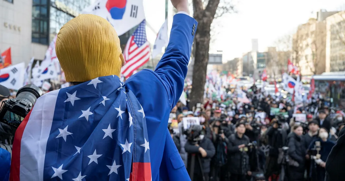 Utanför domstolen samlades tusentals av Yoons anhängare som reagerade med ilska och sorg när domen tillkännagavs. Scenen illustrerar tydligt den djupa polarisering som präglar dagens Sydkorea. På ena sidan finns konservativa krafter som använder retorik påminnande om den amerikanska högern, med slagord som ”stop the steal” och ”make Korea great again” på sina kepsar, tillsammans med amerikanska flaggor.